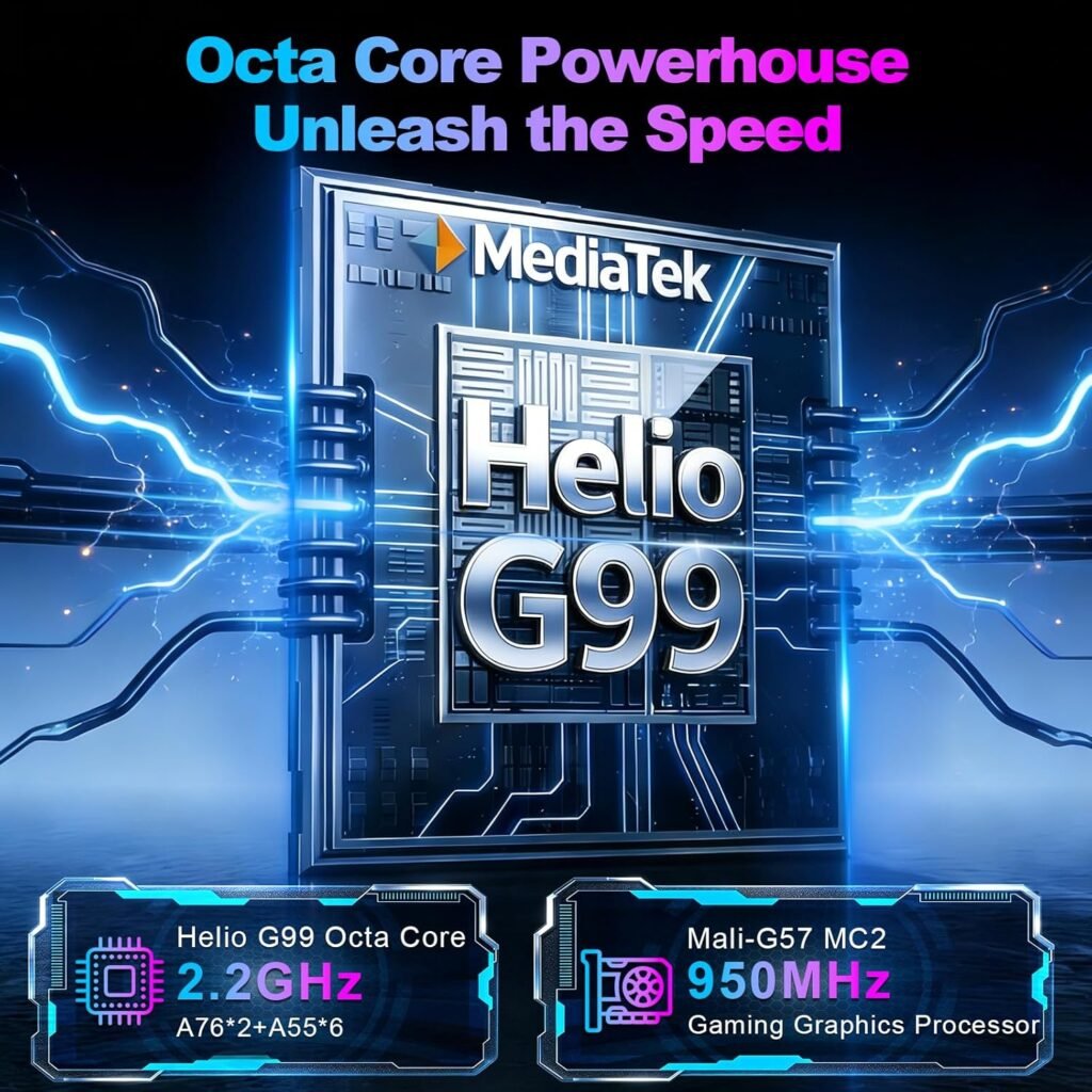 Im Inneren arbeitet der MediaTek Helio G99 Octa-Core Prozessor, der eine maximale Taktfrequenz von bis zu 2,2 GHz erreicht. Dieser Prozessor wurde entwickelt, um sowohl Leistung als auch Energieeffizienz zu bieten.